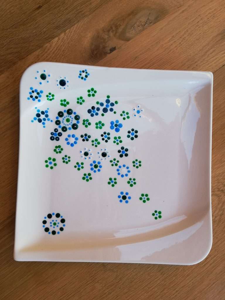 Ben je tevreden met het resultaat? Mooi! Wat je dan nog te doen staat is het servies goed laten drogen. We werken met porseleinverf die bij 3 dagen drogen, vaatwasserbestendig is tot 50 graden. Er komt dus geen oven aan te pas, handig hè!